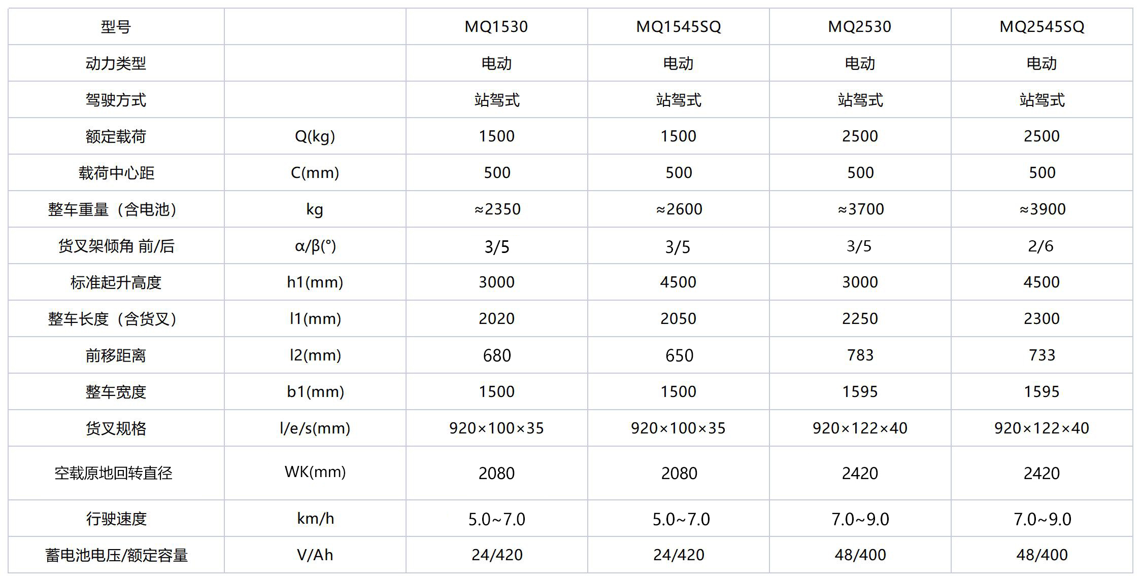 额定载重1.5-2.5吨,起升高度可达8米,高精度门架,在高位负载能力同样出色。